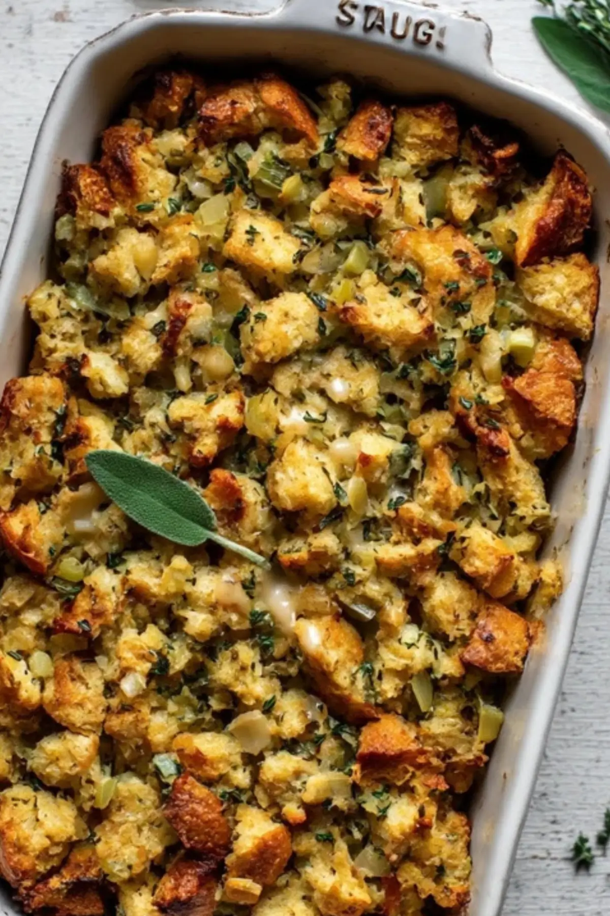 This buttery herb stuffing is the ultimate comfort food for the holidays. Its rich, herby flavor and perfect texture make it a standout side dish that everyone will love. With the right balance of savory herbs, crispy edges, and soft bread, this stuffing will elevate your Thanksgiving spread and become a family favorite for years to come.