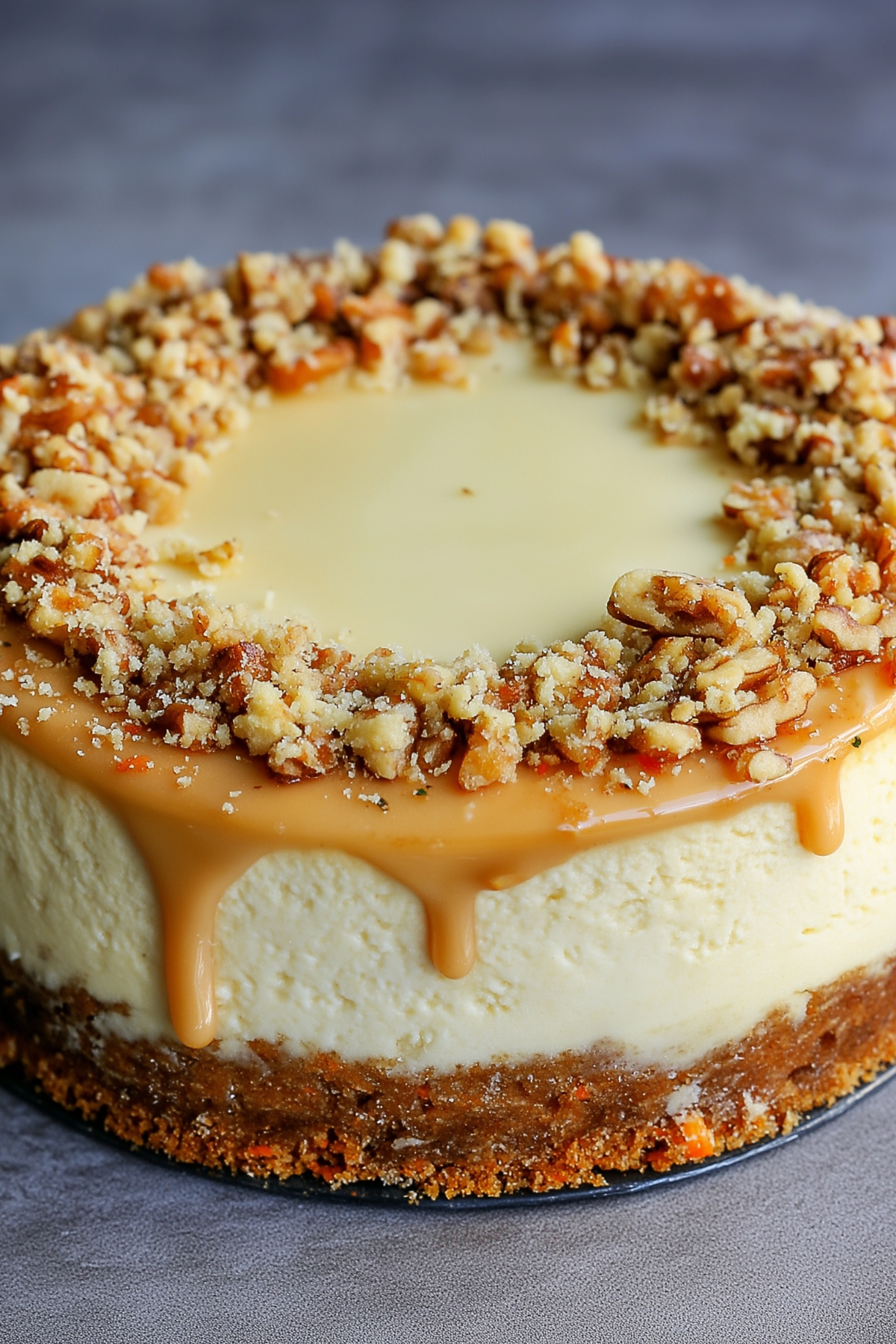 This carrot cake cheesecake pairs beautifully with a variety of toppings. Try adding: