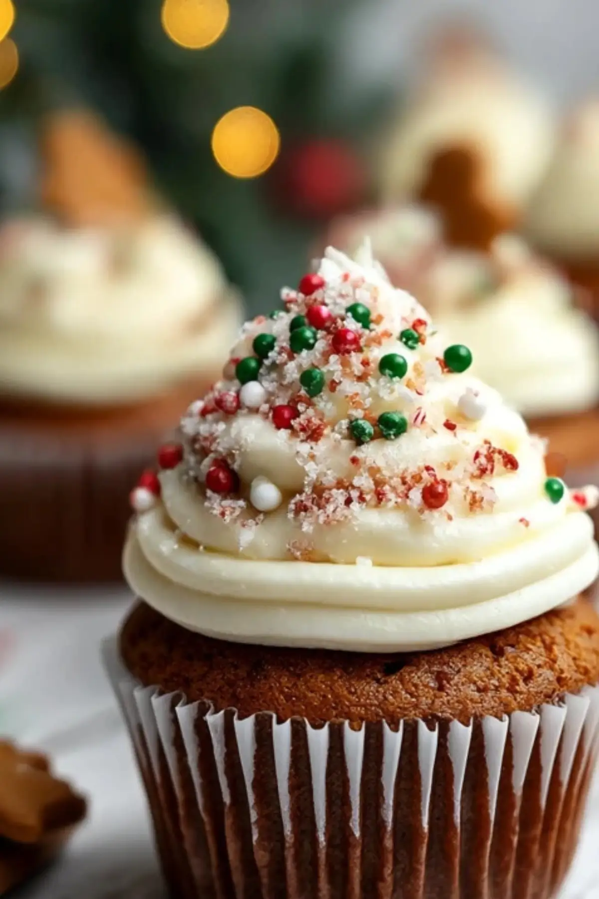 These Christmas Gingerbread Cupcakes are a festive and flavorful treat, combining warm spices like cinnamon, ginger, and nutmeg with rich molasses for a classic holiday flavor. Topped with a creamy, tangy cream cheese frosting, they are the perfect sweet addition to any holiday gathering.