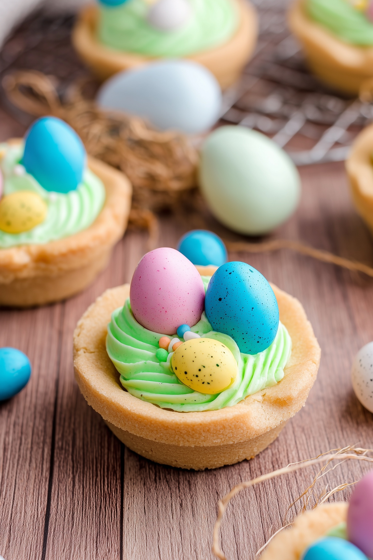 • Egg Candies: Colorful, candy-coated eggs to decorate the cookie cups, adding texture and a pop of color.