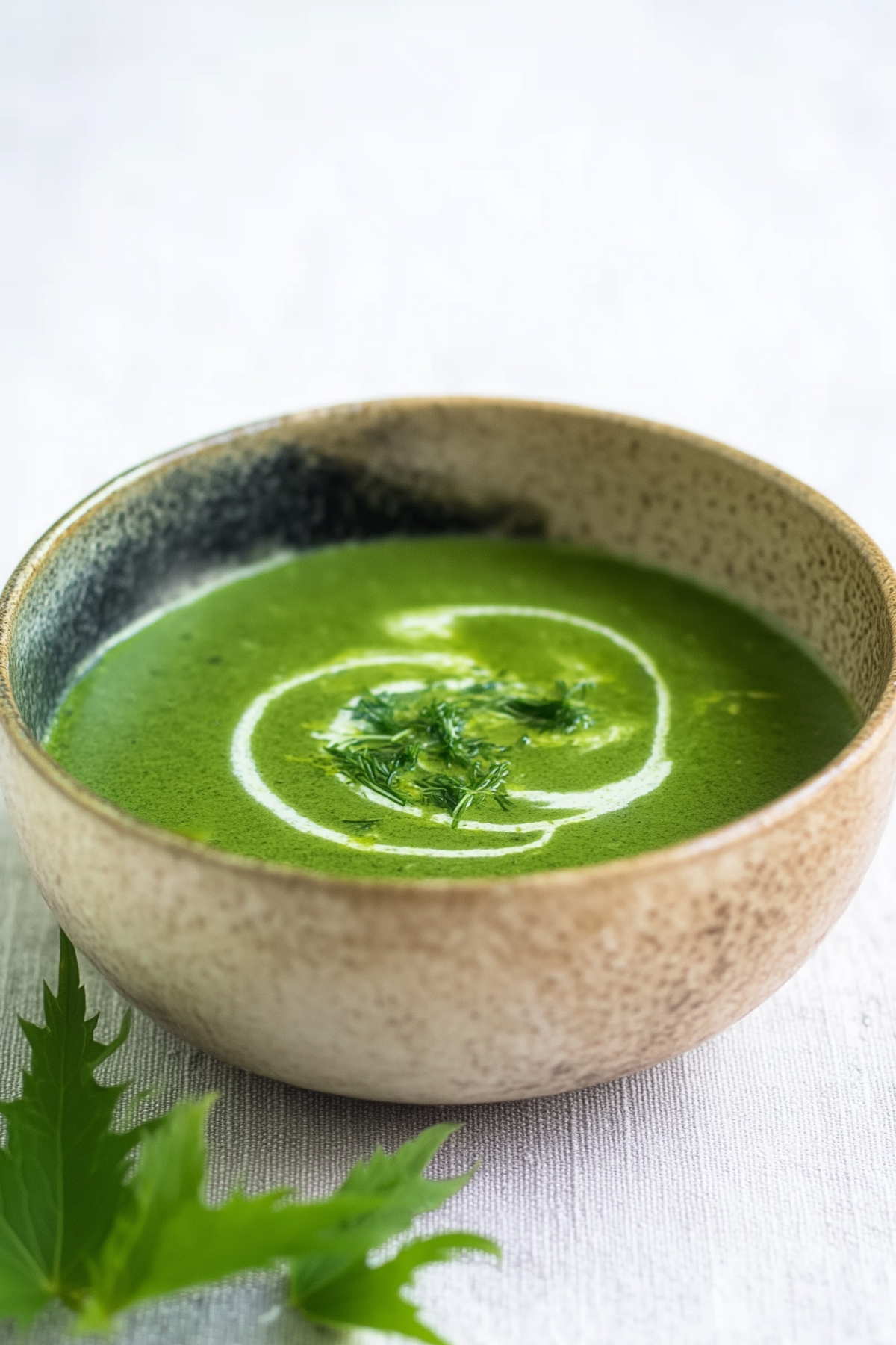 Nettle soup pairs beautifully with crusty bread or a fresh spring salad. You can also serve it with a dollop of dairy-free yogurt for a vegan-friendly option. For a heartier meal, consider adding sautéed wild mushrooms on top, or even a poached egg. If you’re looking to make the soup spicy, a pinch of red pepper flakes can add a bit of heat. The versatility of this soup allows for endless variations, making it a wonderful dish for experimenting in the kitchen.