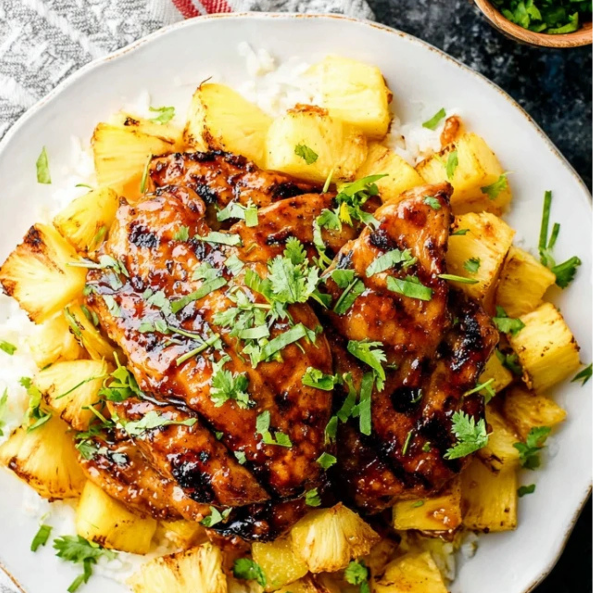 • Chicken thighs or breasts: The main protein, offering juicy texture and absorbing the pineapple glaze well